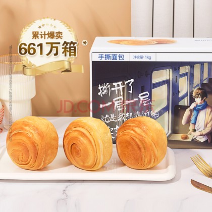 三只松鼠手撕面包 点心零食酵母面包代餐早餐口袋软面包礼盒 1000g/盒